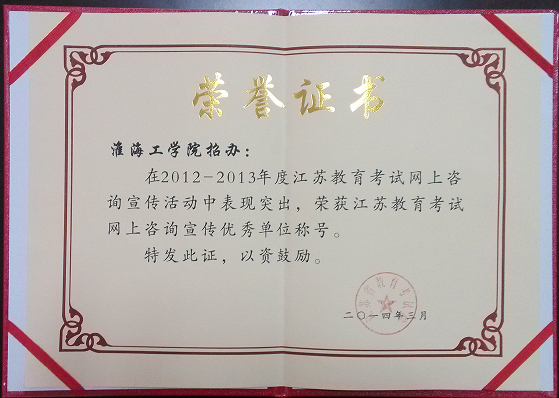 我校荣获江苏教育考试网上咨询宣传优秀单位称号